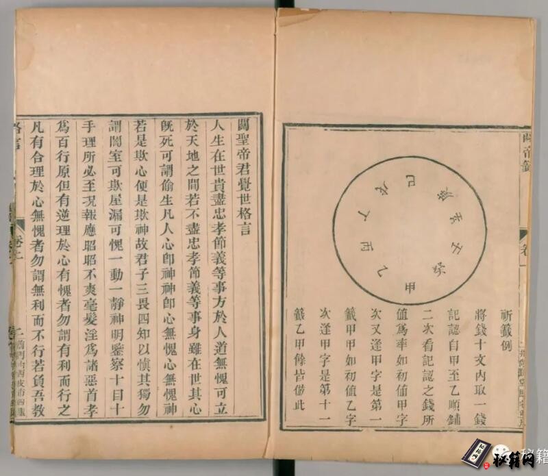 此本道光6年尚勤堂马宅刊北京龙文斋刻字铺藏板的《关圣帝君万应灵签》,这是一本关于解签的书,除释文外还有释义。内有插图一百多幅。