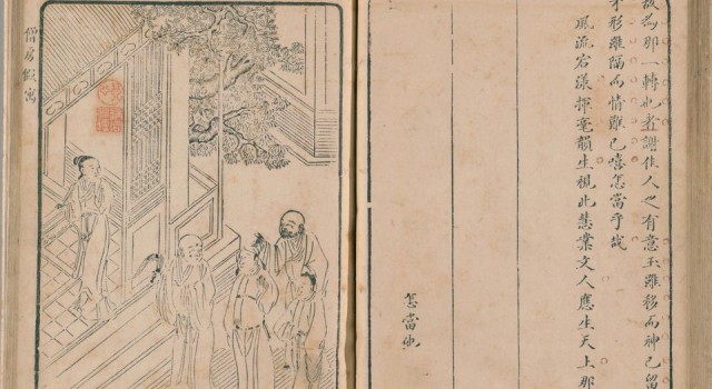 此本是石城的钱书/酉山康熙42年癸未的根据《西厢记》的改本,名《雅趣藏书》,又名《绣像西厢》,实际上是一部以诗、词、八股文刻画《西厢记》人物的专集。此本内有二十多幅精美的版画。