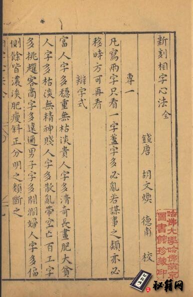 《新刻相字心法一卷》胡文煥文會堂.明萬曆