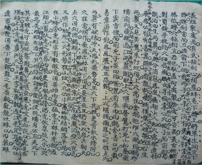 内含,杨公三百六十形图点穴歌、穴情、砂诀、水法、真机赋、浮砂五色断法、过去未来断法、千金八卦书秘断、论进退笔砂断、九天玄女看穴法、用罗针下盘针法、看龙断代数吉凶龙向阴阳相配坐穴分金诀、消峰话度宿度出入初中未关秘传诗诀、砂法分房定位断诀、消峰秘诀、用五行起长生消水、断房分定位图、论行运代数、放水秘诀等。