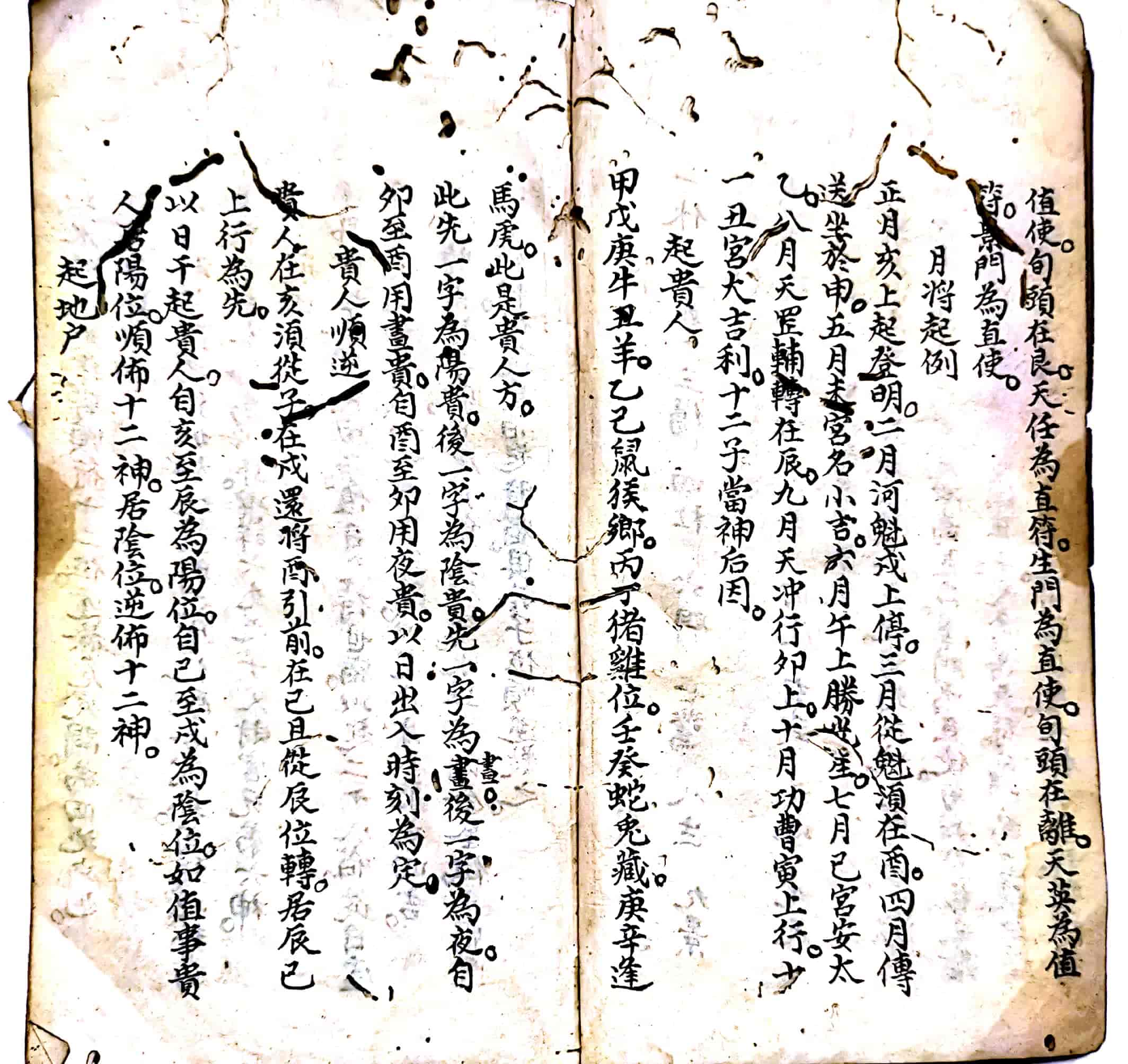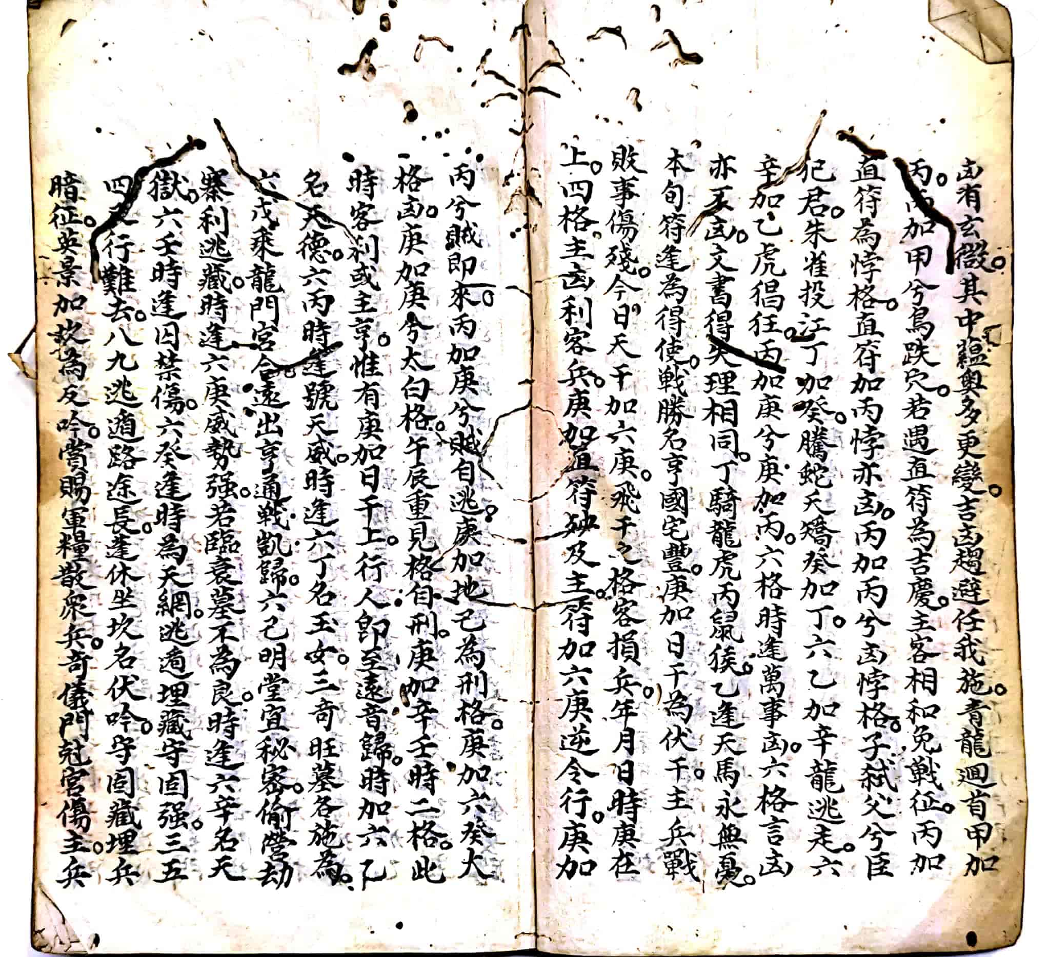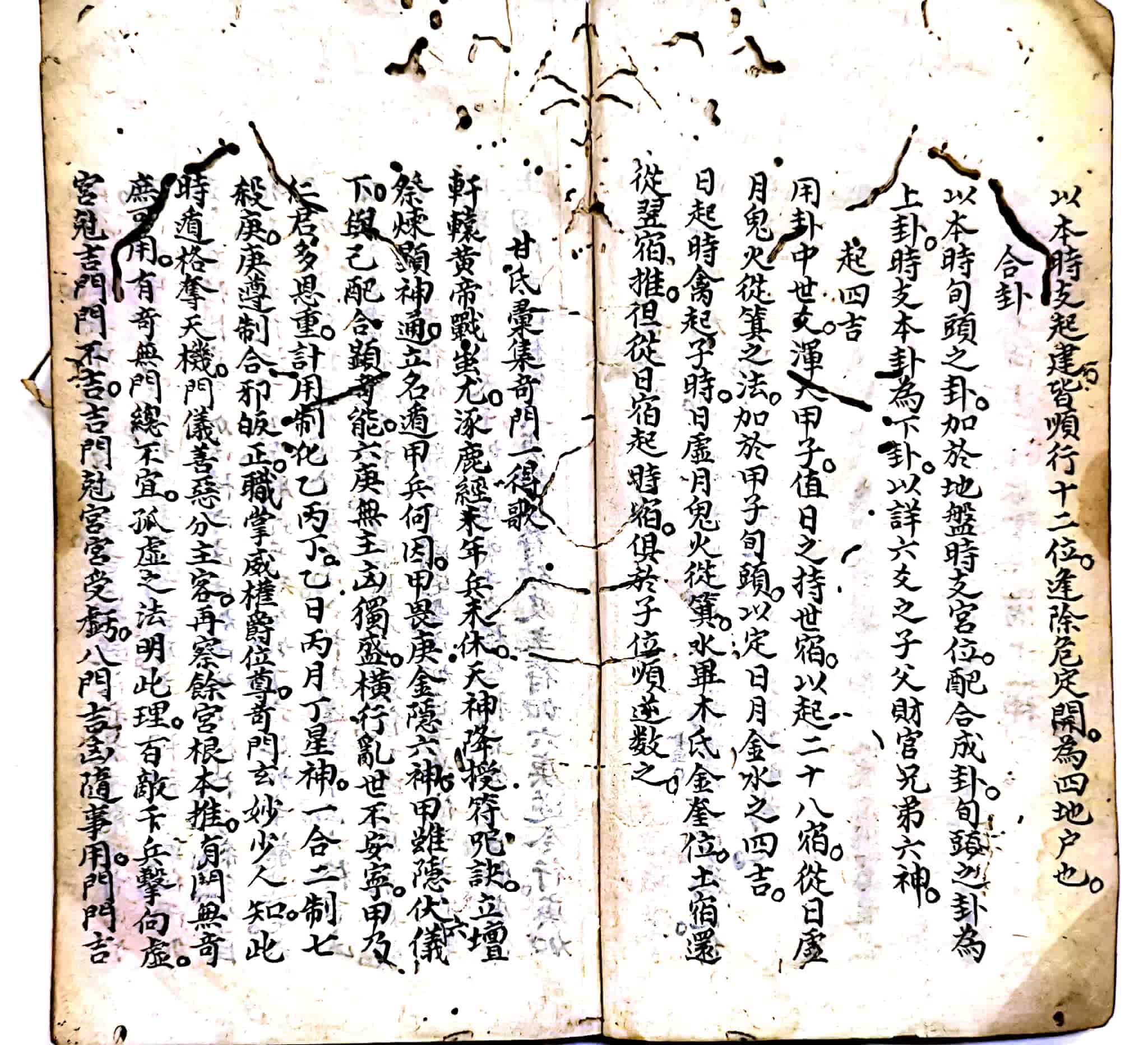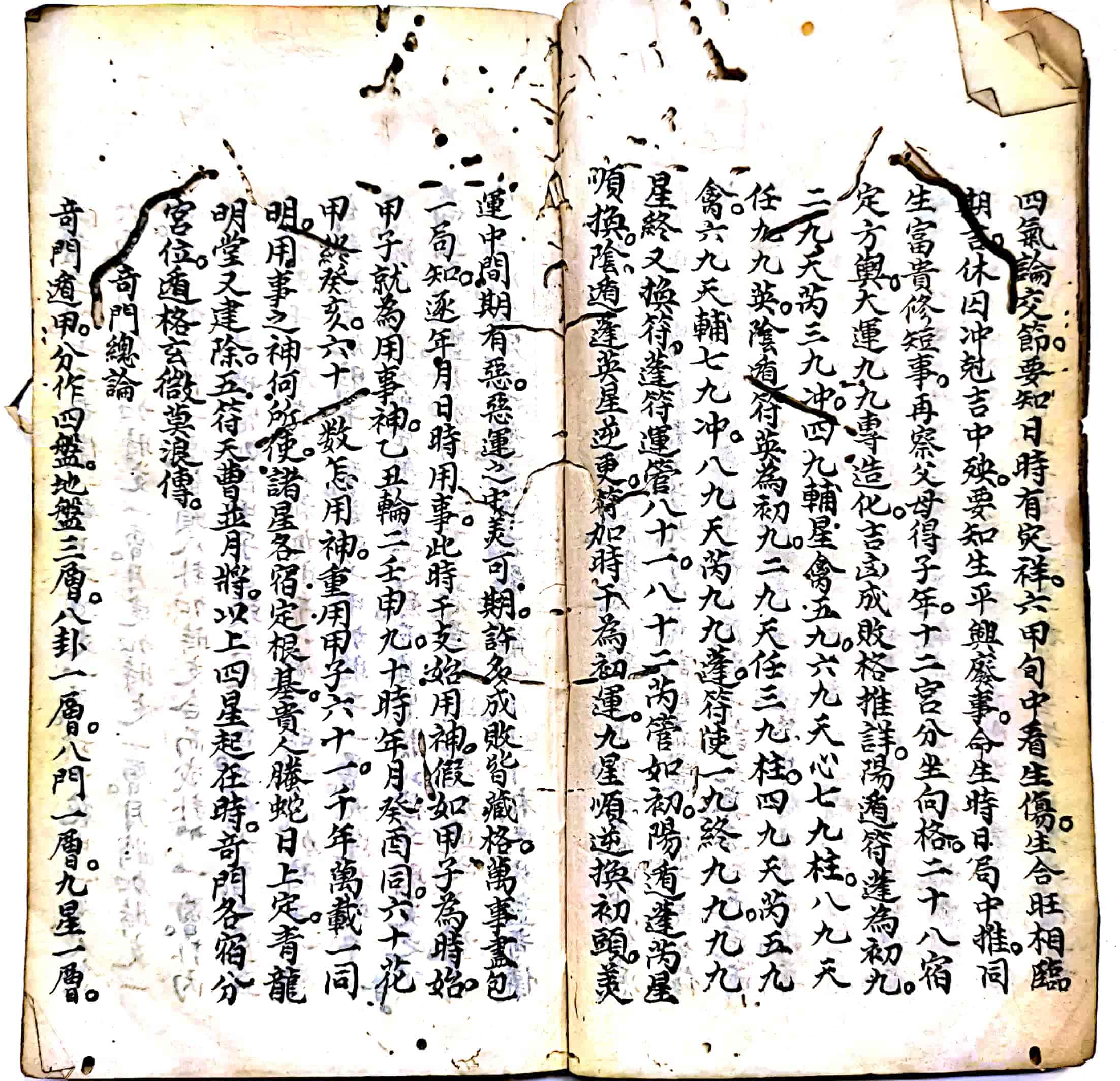 《甘氏汇集奇门一得》手抄本,全本共138个双面,合计276页,末尾几页稍有破损。