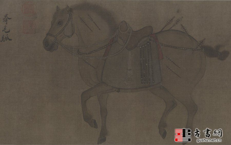古籍.昭陵六骏图卷. 金. 赵霖作. 绢本设色. 附书签