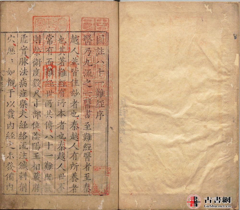 首明正德五年(1510)徐昂序,云四明张君世贤,于医学有心领神会,诊视病人,用药如神,曾为《难经》作注,注后附图,两淮盐运使吕君邦佑,珍重其人,乃为之锓梓以传。此本为杨氏海原阁旧藏,卷二首叶残缺。《四库全书总目》提要评价该书:“于八十一篇,篇篇有图,凡注所累言不尽者,可以披图而解。” 张世贤之图注是以配合图表的方式对《难经》进行注释,通俗易明,成为后世刊本最多、流传最广的一种注本。
