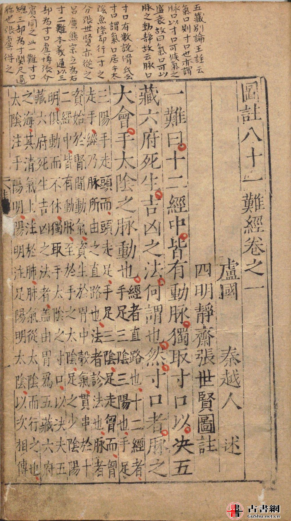卷首题:盧國秦越人述,四明靜齋張世賢圖註
