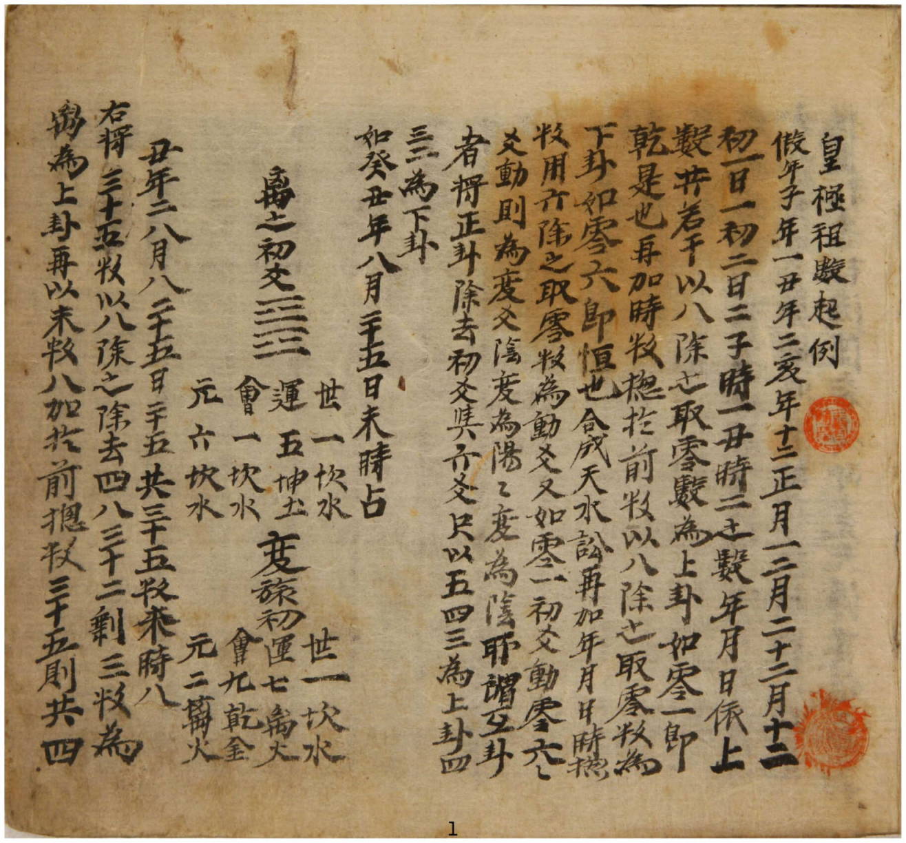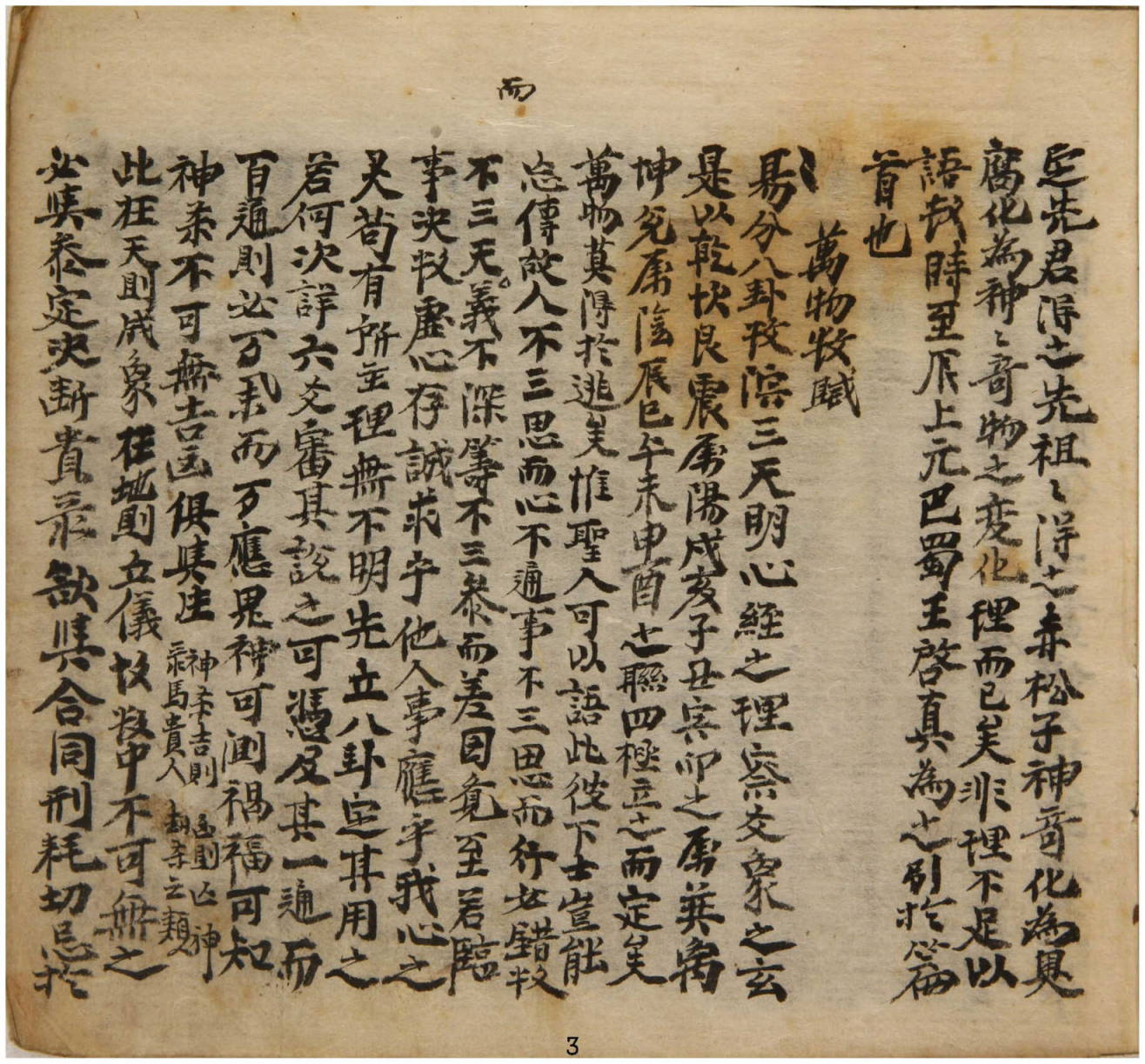 《万物数》,封面题为心易,开篇为皇极祖数起例——万物数序——万物数赋等,内容为演算邵雍元会运世十零百千占卜之数法。