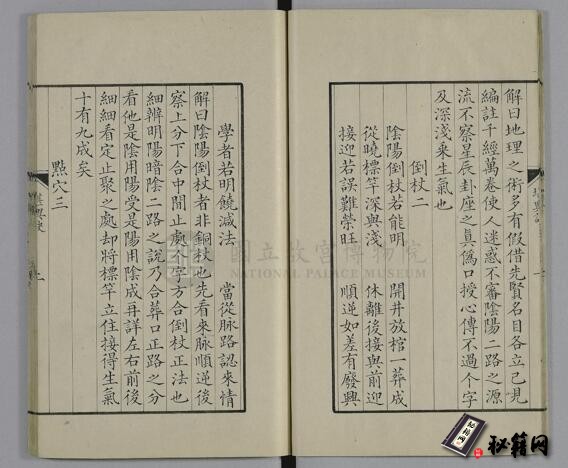 《堪舆倒杖诀》一册,不分卷,台湾故宫博物院藏,清初虞山毛氏汲古阁影钞.明嘉靖十二年原刊本。作者谢和卿,字觉斋,别具玉元子,有神宝经、天宝经传世。所著《倒杖三十六诀》,专言作穴之法。全书计三十六章,每章以四言绝句的韵文形式概述全章大旨。另有高山、平地、四应杂录三篇,详言水法和山法,多有精义。