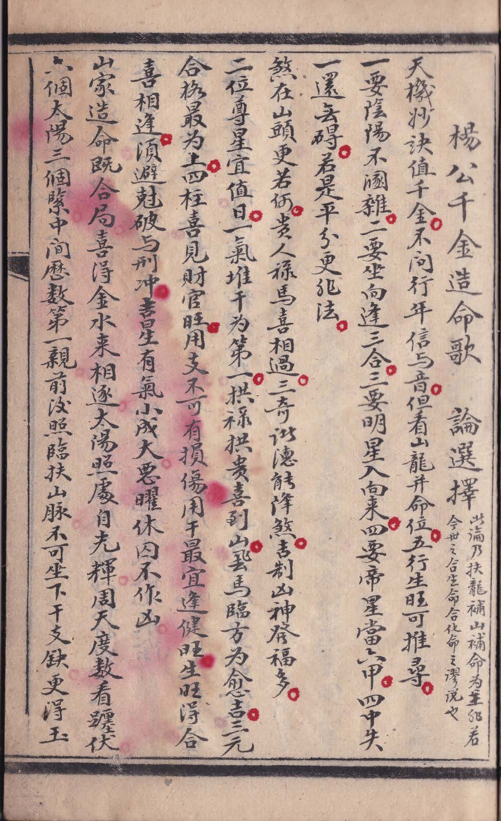 一、选择须遵杨公千金造命歌,及杨公天元五歌内之选择奥旨,切勿用崇正辟谬,合生命,合亡命,不通之偽说,為是也。
