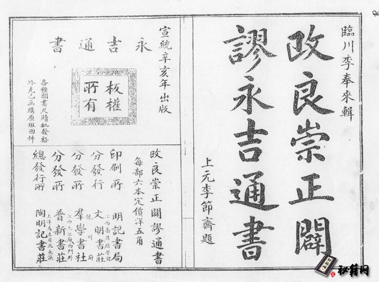 《改良崇正辟谬永吉通书》 ,清.李泰来辑,清宣统三年石印本。命理、风水、择吉系列,