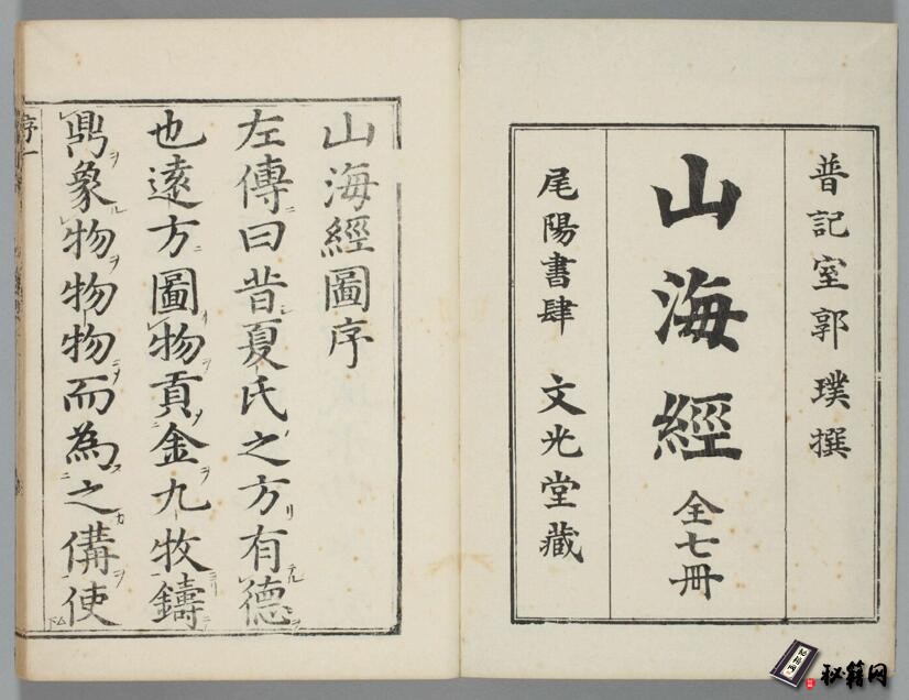 书名:山海经.7册.郭璞撰.文光堂本.日本明治35年.1902年.和刊.新日本善本综合数据库藏.1-4册