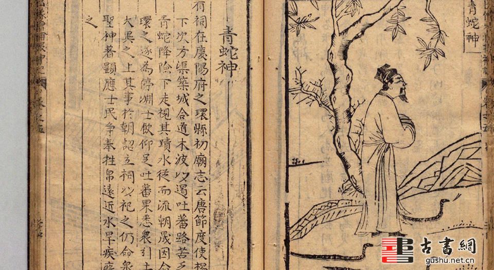 这个本子《新刻出像增补搜神记》插图的绘刻,较其晚出的戏曲、小说版画更显细致,对研究富春堂早期小说版画风格,提供了很珍贵的资科。(文字介绍参考:中国古小说版画史略)