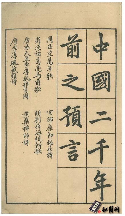 主要记录了古来《周吕望万年歌》《宋邵节康梅花诗》《蜀汉诸葛亮马前歌》《明刘伯温烧饼歌》《唐袁天罡李淳风推背图》《黄櫱禅师诗》《唐李淳风藏头诗》这七大预言古籍合集,这些书历来都被列为禁书,这里不方便介绍,有兴趣的朋友可以自己去研究
