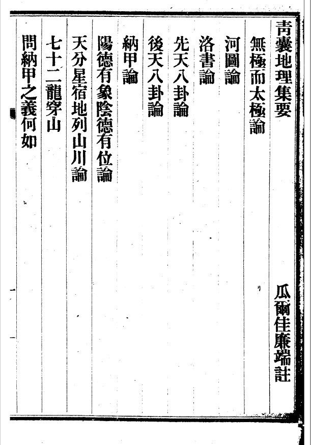 《青囊地理集要》,清.廉瑞注,清光绪33年(1907)北京琉璃厂文宝堂刊本。