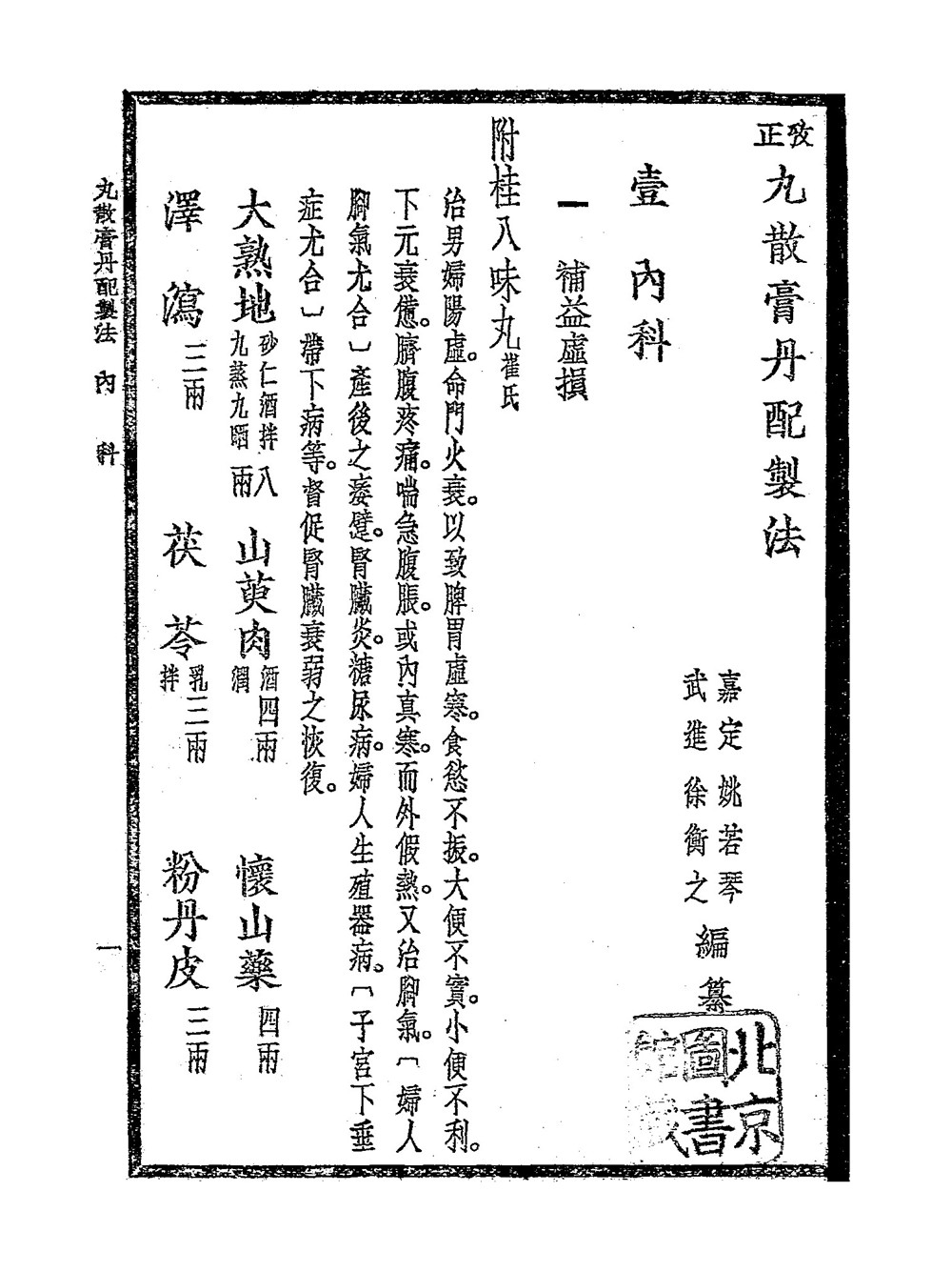 本书凡医家药肆通行之方,择其功效素著者,分类列入,其药品复杂,或冷僻不常用者,概从删汰。