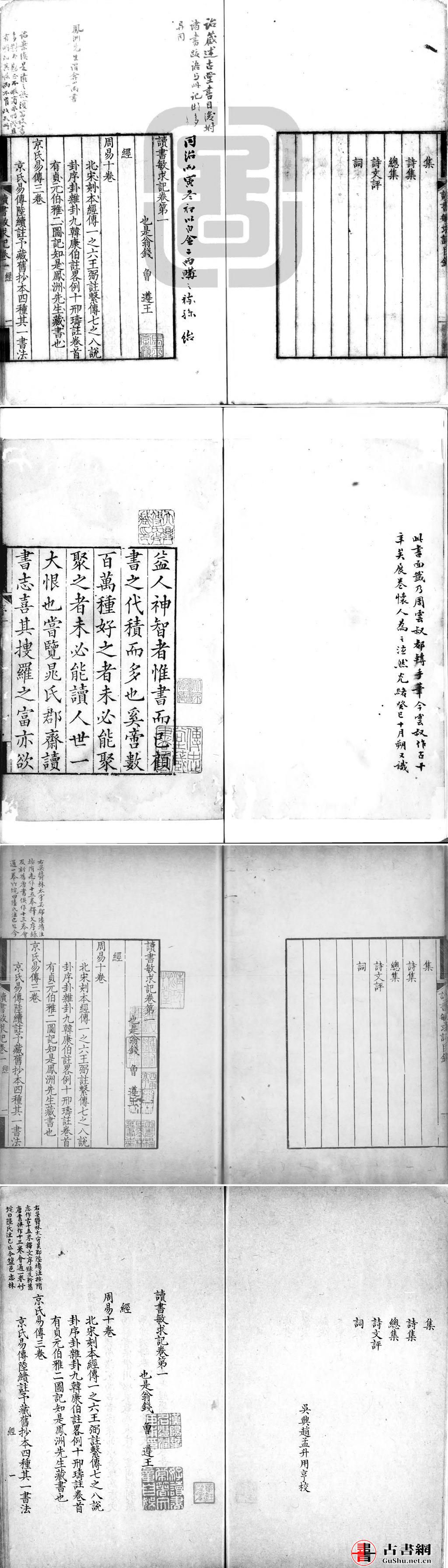 读书敏求记. 清. 钱曾撰. 清雍正 6 年刊本. 清吴志忠录. 黄丕烈批校. 周星诒批注并跋. 蒋凤藻. 陆心源批注. 灰度胶片(有水印)