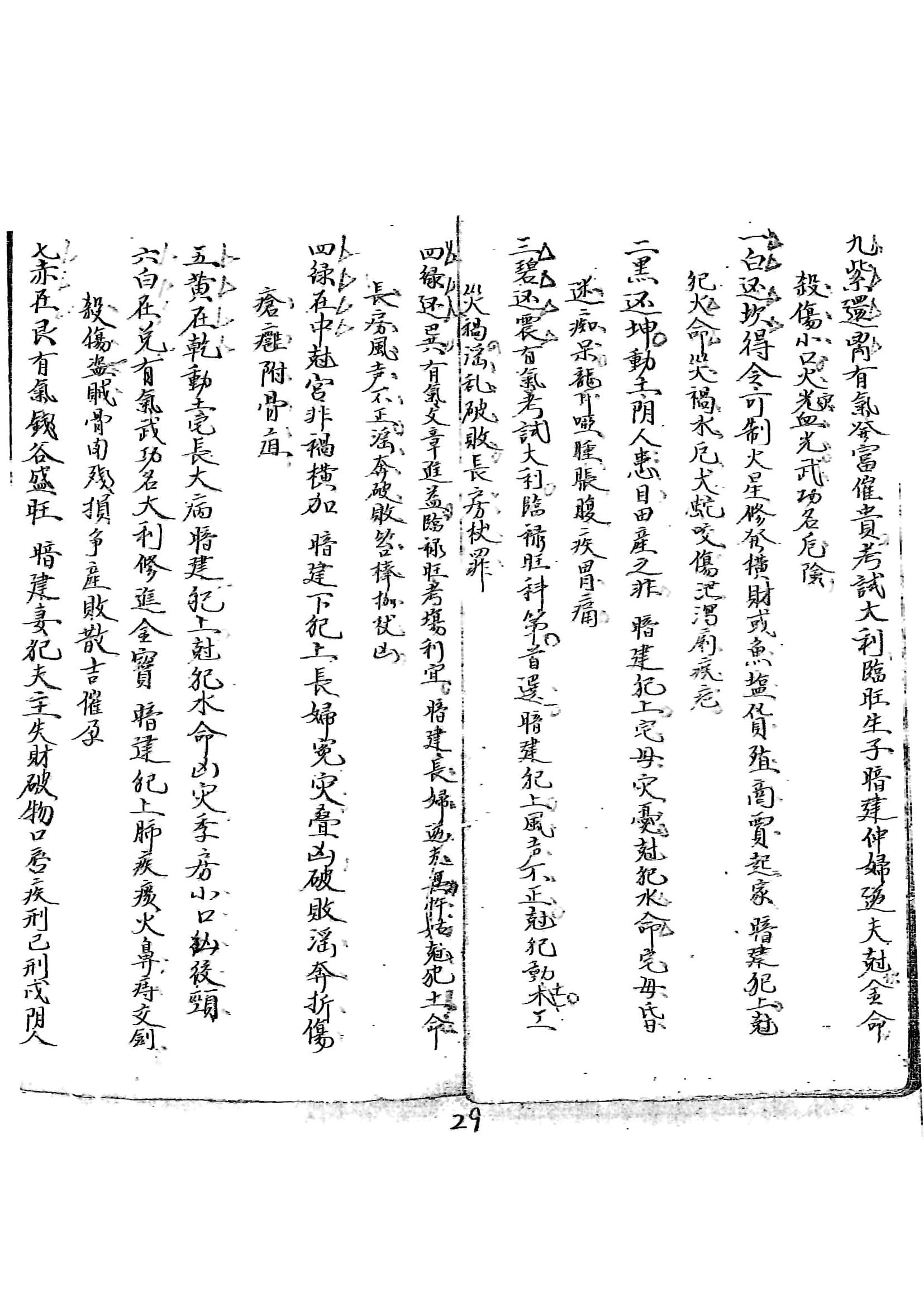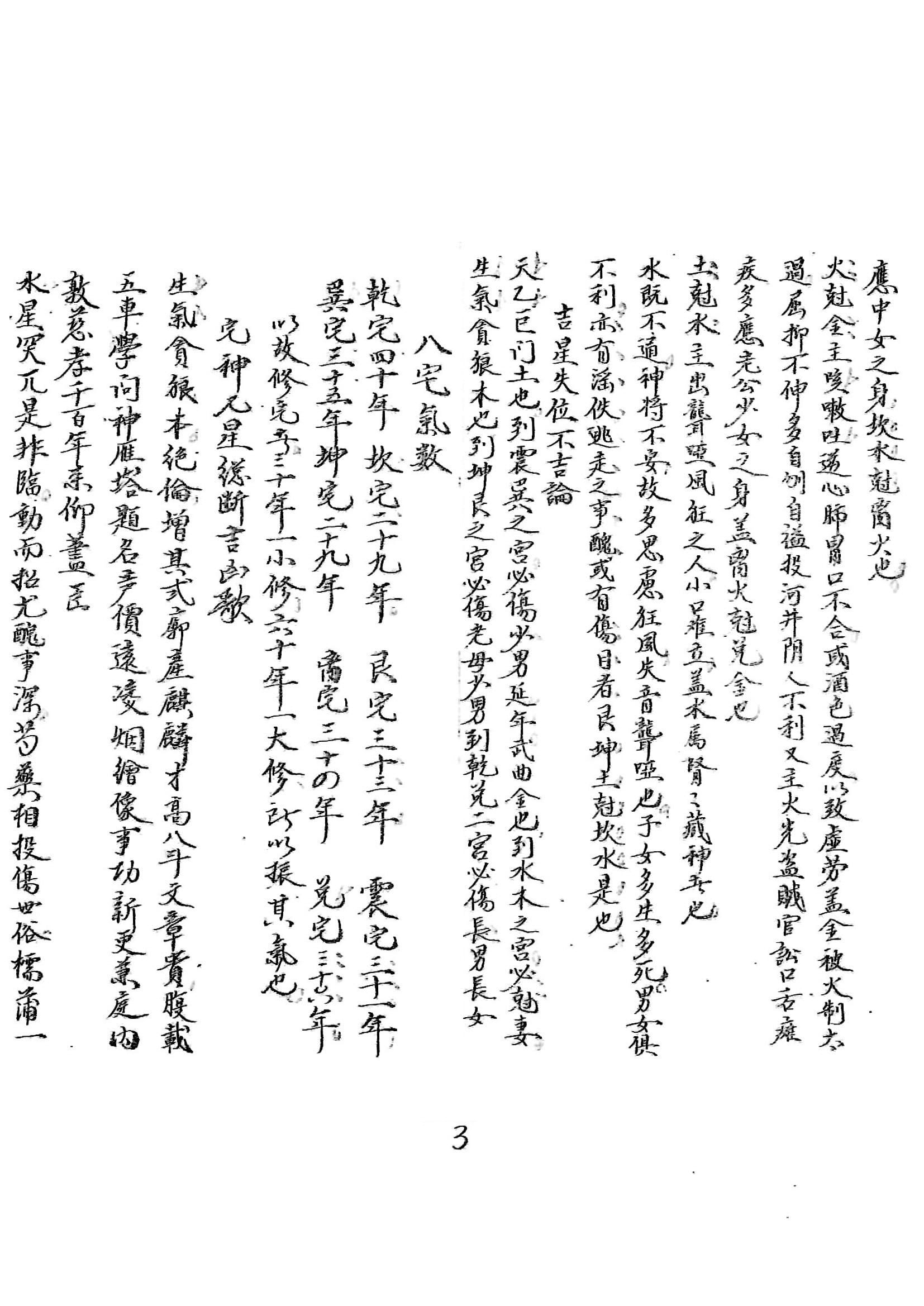 内容包括:定吉凶方位歌,八宅推星定屋高低法,各宅放水法,五行所主凶象歌,五行犯尅所主疾病例,吉星失位不吉论,八宅气数,宅神七星总断吉凶歌,六十四怪形论,宅第秘要图解,却病要旨,问疾病洪范九,问瘟疾系乎时令岂亦有地理气化应及人身者,问齁喘哮吼咳嗽啾唧,问痰火劳病血诸病系何气化,问闭经不调气化,问崩漏气化,问生孩无乳汁因何,问瘟块血疽因何所犯,问气痛何由,问小儿抽筋急惊何以,问停滞食积犯何气化,问鼓胀,问水蛊,问黄肿系何气化,问流痰气化,问中风中痰,问风疾系何气化,问头上五行,问痰迷心邪,问头脑疾病,问偏头鼠头大头,问瘦包赘疣,问脸面病疾,问耳病,问目病,问鼻病,问重瞳四乳是何气化,问生六指是何气化,问口病齿牙唇舌分气化,问喑哑,问哽咽气化,问喉疾,问项疾,问疥疮瘫疽,问癣癞汗瘢,问疮毒,问手何以属,问足何以属,问脏腑相贯,问五脏五行,问手指怪病,问体气狐臭因何所出,问出驼腰背,问出矮子,问腿疼,问跏子跛子因何气化,问出瘫子,问弱症淋遗是何气化等。