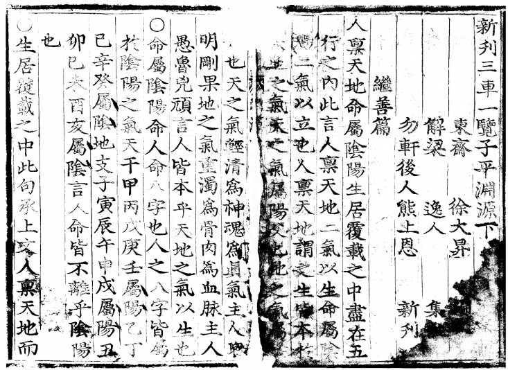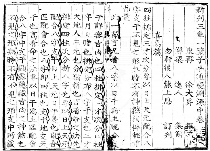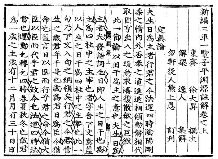 《新编三车一览子平渊源注解》天地人三册,被收录于子部珍本备要第081种,明吕子固集注。