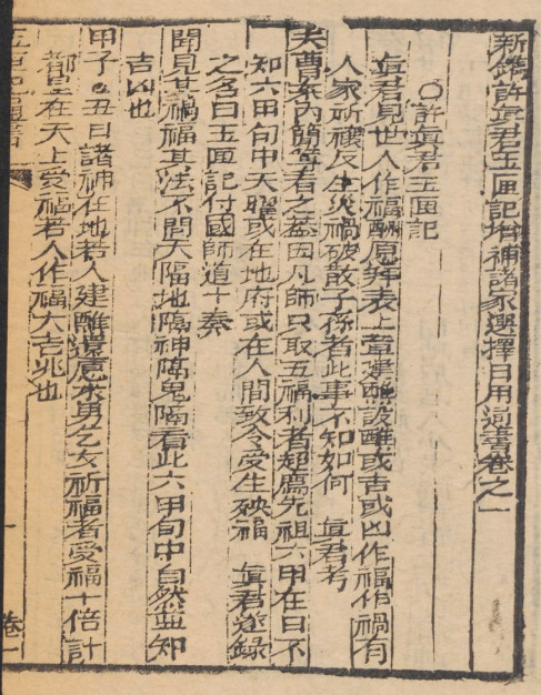 《新镌许真君玉匣增补诸家选择日用通书》6卷,嘉庆2年新镌。被收录于术藏第92卷选择部,子部珍本备要第338种。