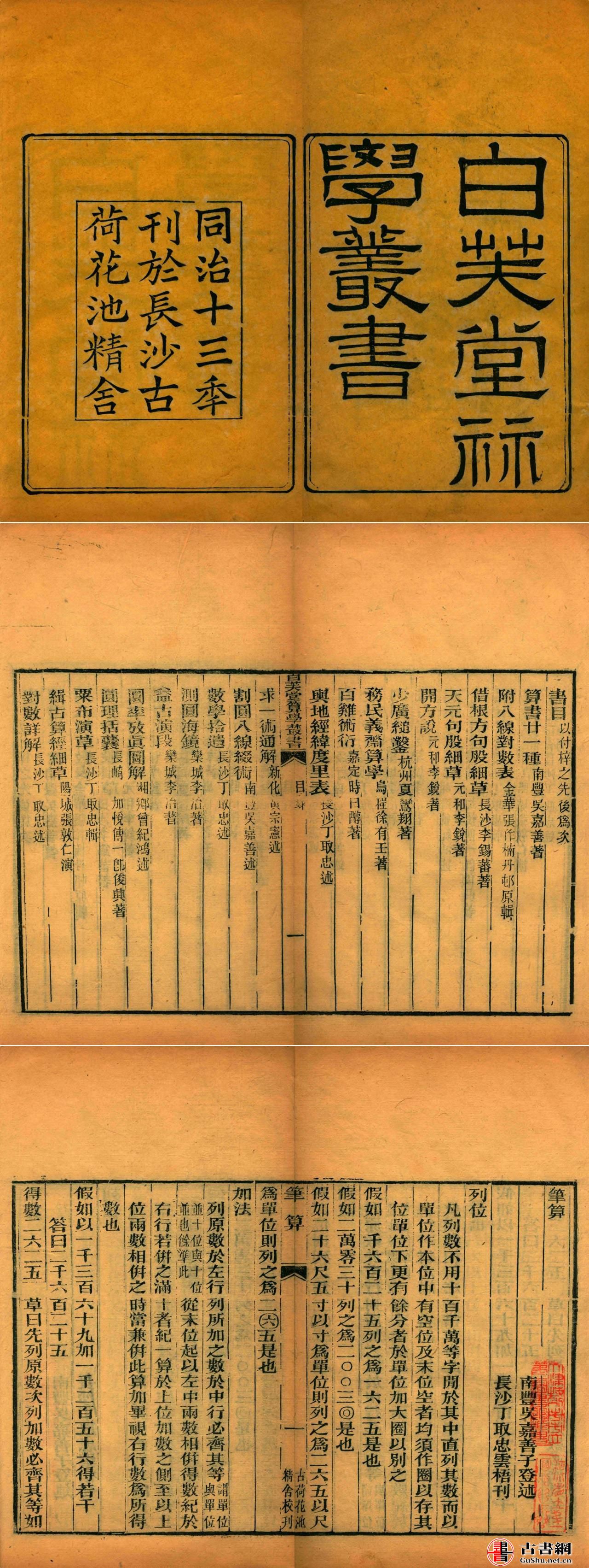 古籍.白芙堂算学丛书. 四十八种. 八十九卷.清同治光绪时期长沙古荷花池精舍刊本