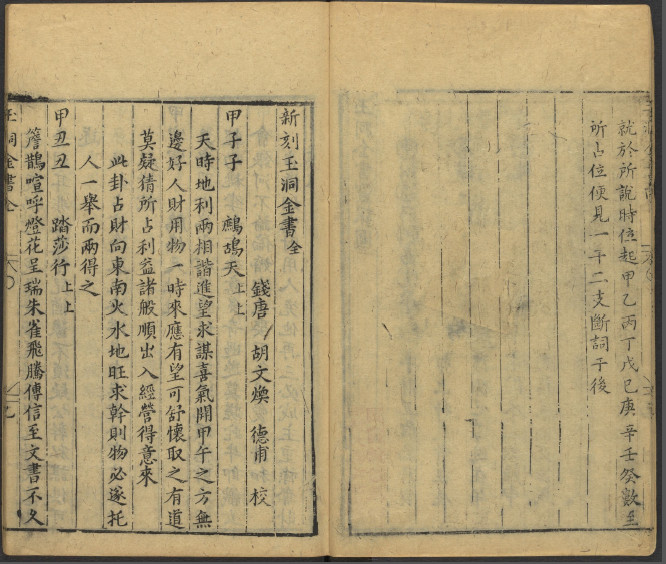 《新刻玉洞.金书》明刻本,(明) 胡文煥 校,六壬占验类古籍。被收录于子部珍本备要第319种。