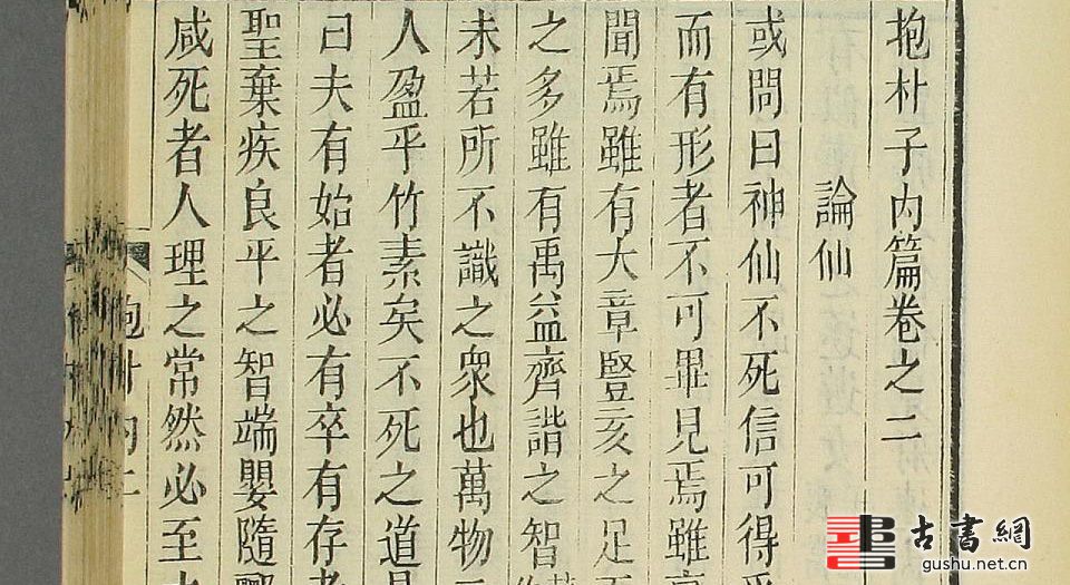 《抱朴子》今存“内篇”20篇。论述神仙、炼丹、符箓等事,自称“属道家”;“外篇”50篇,论述“时政得失,人事臧否”,自称“属儒家”。“外篇”中《钧世》、《尚博》、《辞义》、《文行》等篇有关于文学理论批评的内容。