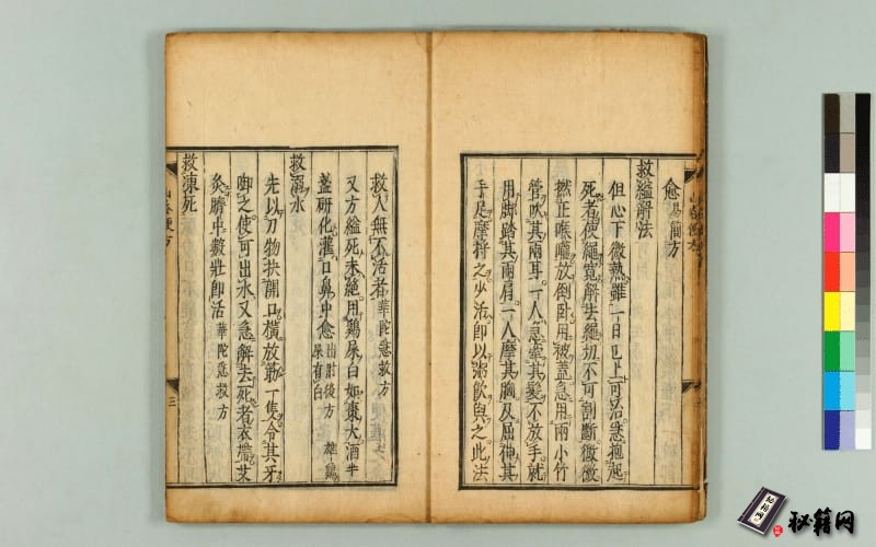 《山谷便方》乃为穷乡僻壤抢救急症而撰。该书列病九十七种,涉及脱阳、卒然昏迷、各种药物食物中毒、自缢自杀、突然灾祸(溺水、堕下等)、卒心急痛、急性疫病、妇人産育危重症、各种外科痈疽肿毒、各种动物咬伤、误吞铜钱或针、诸鱼骨鲠、汤火伤灼、金疮跌扑、目耳鼻舌齿喉急症、二便重症、乾湿霍乱、痢疾疟疾、下血、疝气等,末爲“避难止小儿哭法”。以上诸急症救急法虽抄录前人书(其后多注出处),并非皆出作者经验,然亦能便民应急。
