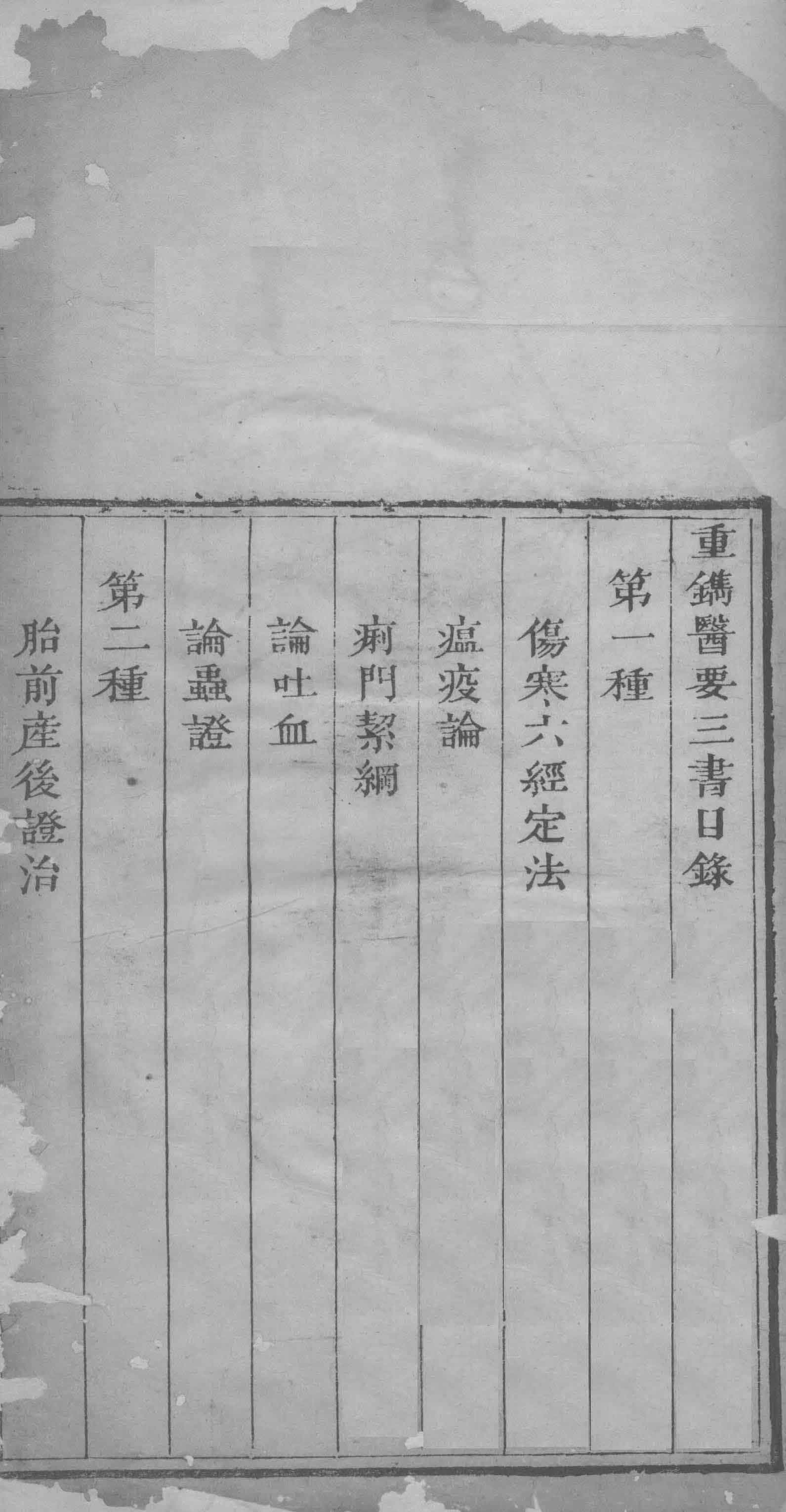 第一种,伤寒六经定法,瘟疫论,痢门契纲,论吐血,论虫证。