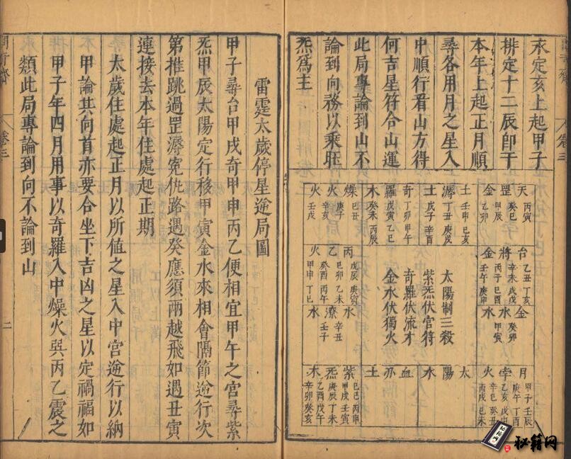 明天启七年(1627年)木刻板,刘基撰,江之栋编辑, 汪元标订。佐玄直指图解10卷, 赋1卷, 附上官出行1卷, 出行求财1卷。