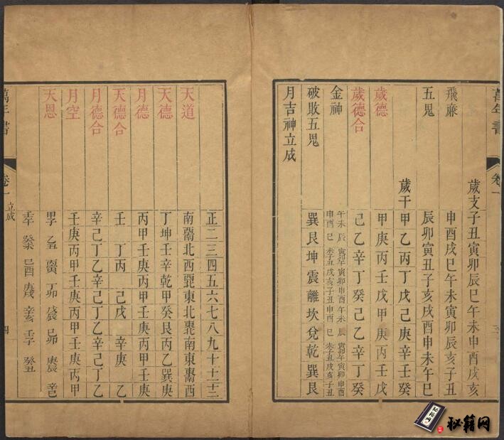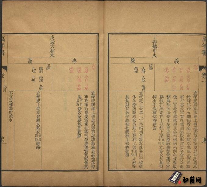 0268-萬年書十二卷.清康熙欽天鑑官奉敕撰.內府.清康熙 內府, 清康熙 1622-1772]朱墨套印.4册