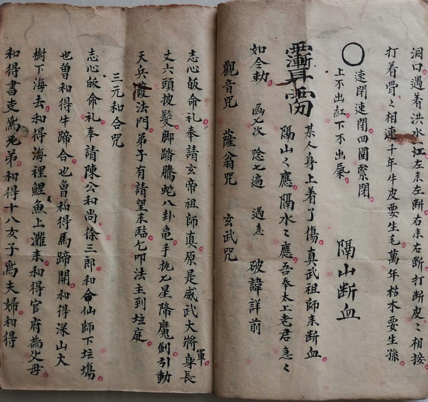 内容包括:启请诰、令牌坐乾对巽(以令牌台上画讳)、隔山断血、观音咒、萨翁咒、玄武咒、三元和合咒、神符妙法、杨公符、修犯加讳、照身符、王帅符箓、九龙水、小儿摸惊法、又加破念法字、八卦姓、敕惊素字号、一治缚疟讳、一治心痛加气痛、一治伤寒冷、一治热烦、一治疮毒、一治癫狂用、一治疾病、一治痰结水冷发汗用等。。。。。