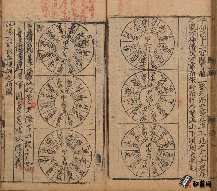 此《新刊禽遁大全》四卷附补全一卷,明池本理著。内容大致是旧时术数家用五行及各禽与二十八宿相配,以定日辰方位的吉凶。书内有相关图释及二十八宿(以各禽为诸宿之神:角木蛟、亢金龙、氐土貉、房日兔、心月狐、尾火虎、箕水豹、斗木獬等)插图。此为明弘治09年进贤书舍刊本。