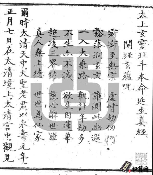 道家古籍《太上正一天尊说镇宅消灾龙虎妙经》