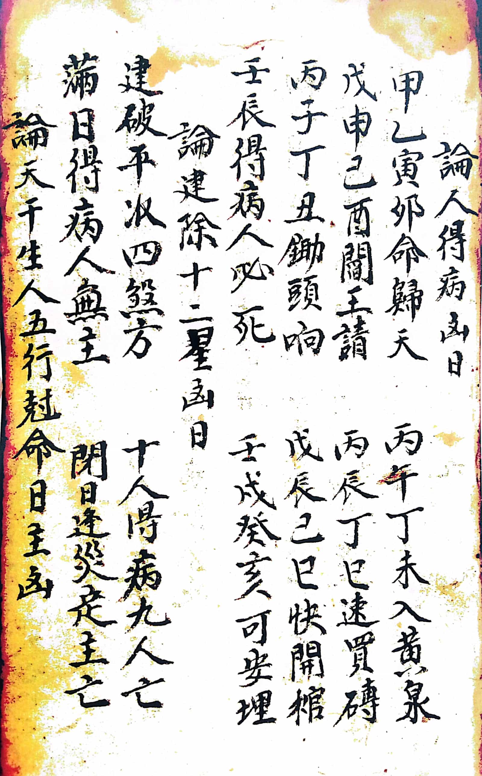 内容包含:入门见报应法、论人染病吉凶日、论人得病凶日、论建除十二星凶日、论病逐日吉凶看、论四门看病吉凶图、论四季得病凶日、论入门时断诀、论十二日遇凶时者主不吉、张天师注逐日染病吉凶、论建除十二星吉凶、论病龟头尾染病吉凶图、论断医子法、人见怪吉凶、十二地支见怪吉凶论、见怪总论吉凶、犬嚎怪断、请师人断法、袁天罡先生所注六十四爻吉凶、病人吃符式、先天断人吉凶、逐日得病吉凶断、逐日得病日期、纳音妙判、十干得病论、推逐日得病甲子、看禄马起例、看生死图推看何门得病吉凶、催生改便符、论得病八卦吉凶图式、论十二地支得病断法、十二命生人得病断法、五行得病法、又论五行断法、十二时辰得病判断、论每日得病断法、人得病禄马斜倒断法、得病在圈内外吉凶图、论十日甲子得病断法、看百怪吉凶、论六畜夜日怪、论凡人年月日时见百怪吉凶判法、十二日时辰见百怪判法、每日见怪吉凶判法、鸡啼非时辰判报、扫财门、收蚂蚁入宅秘旨、先天断吉凶卦书、驱邪治病法秘等诸多内容。