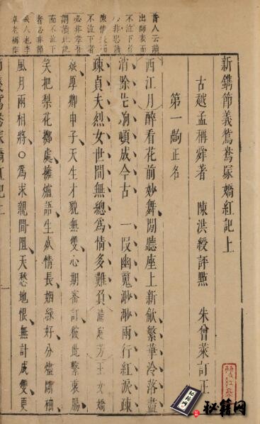 卷首题:古越 孟稱舜 著、陳洪綬 評點、朱曾萊 訂正
