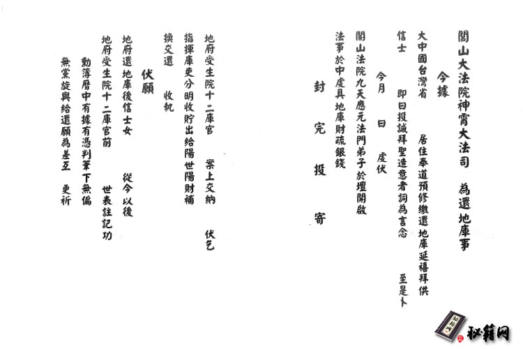 书名:《閭山借天地水庫法》刻印方式:手抄