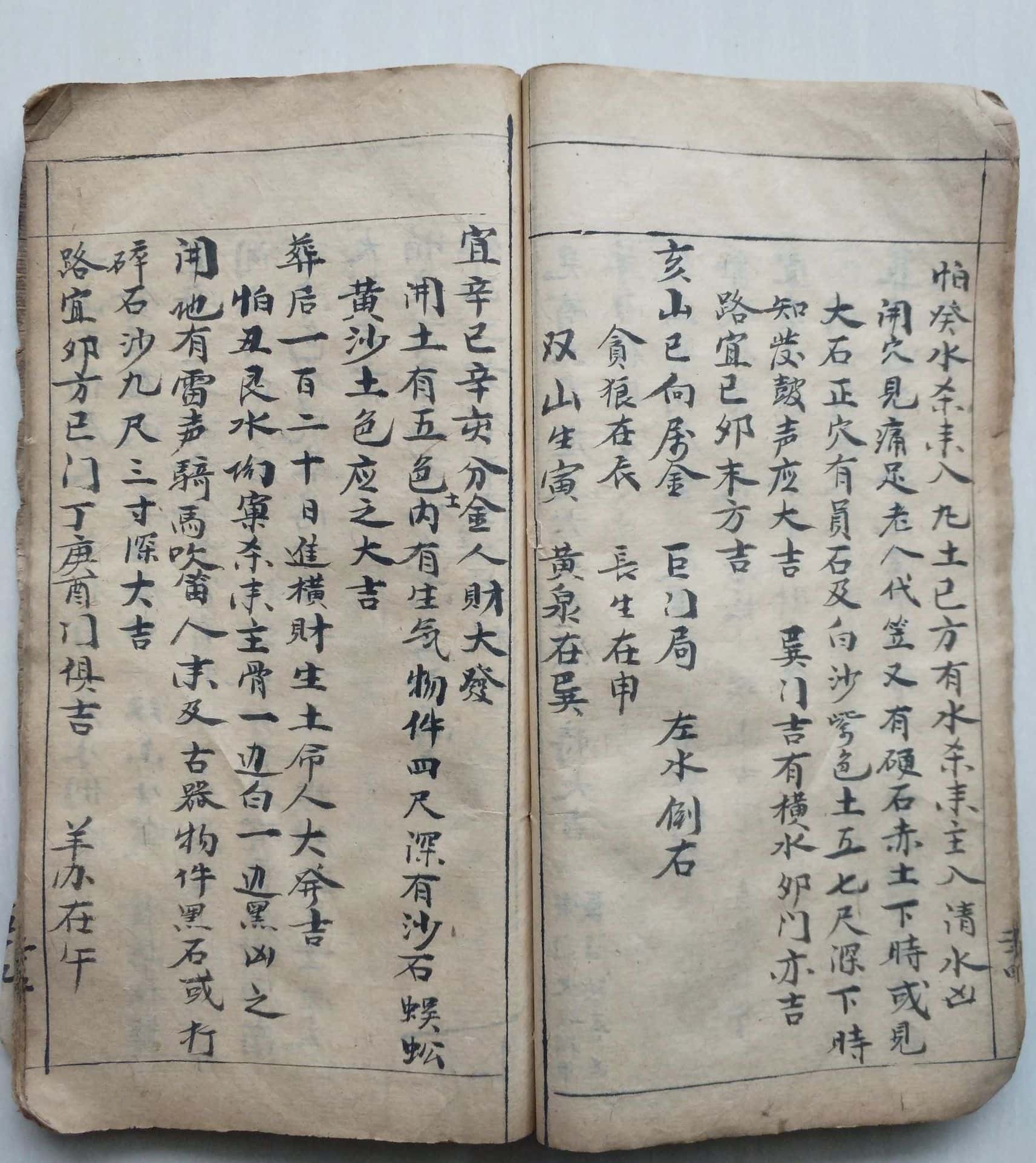 内容包括:嘱地契语,请樑呼用,三合钩照,论二十四山所属,二十四山起贪狼,分金秘授诀,误前九恶向,本命天罡四旺杀,六秀水法,房分断,断吉凶水神分房看法,峰水方位分房断决,论八方天马方,入门断法鬼灵经,平洋诀,玄关窍法,八煞日堪舆游山忌,论杀师日,祭坟祝文,安葬起坟号咒一宗,藏身法秘传,制飞针法,罗经放针,撒土言,论六甲青龙华盖,演禽出入兵时家入门法,宅内作灶方位妙诀定向,离中孤虚法,六甲孤虚法,纳音歌,解富贵贫贱碓乡砂,气曜夜纳诀,论向放水,九星消水法,选斗首五行确有吉有凶定局等。