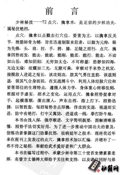正宗的少林秘技功夫《七十二点穴擒拿术》武功秘籍