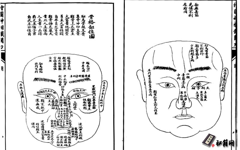 清代卦书《绘图神像铁官刀》,一套四卷全,光绪戊申年上海锦章书局印刷。并配有面部图像。大凡观人之相貌,先观骨格,次看五行,量三庭之长短,察面部之盈亏,观眉目之清秀,看神气之荣枯,取手足之厚薄,观须发之疏浊,量身材之长短,取五官之有成,看六府之有就,取五岳之归。