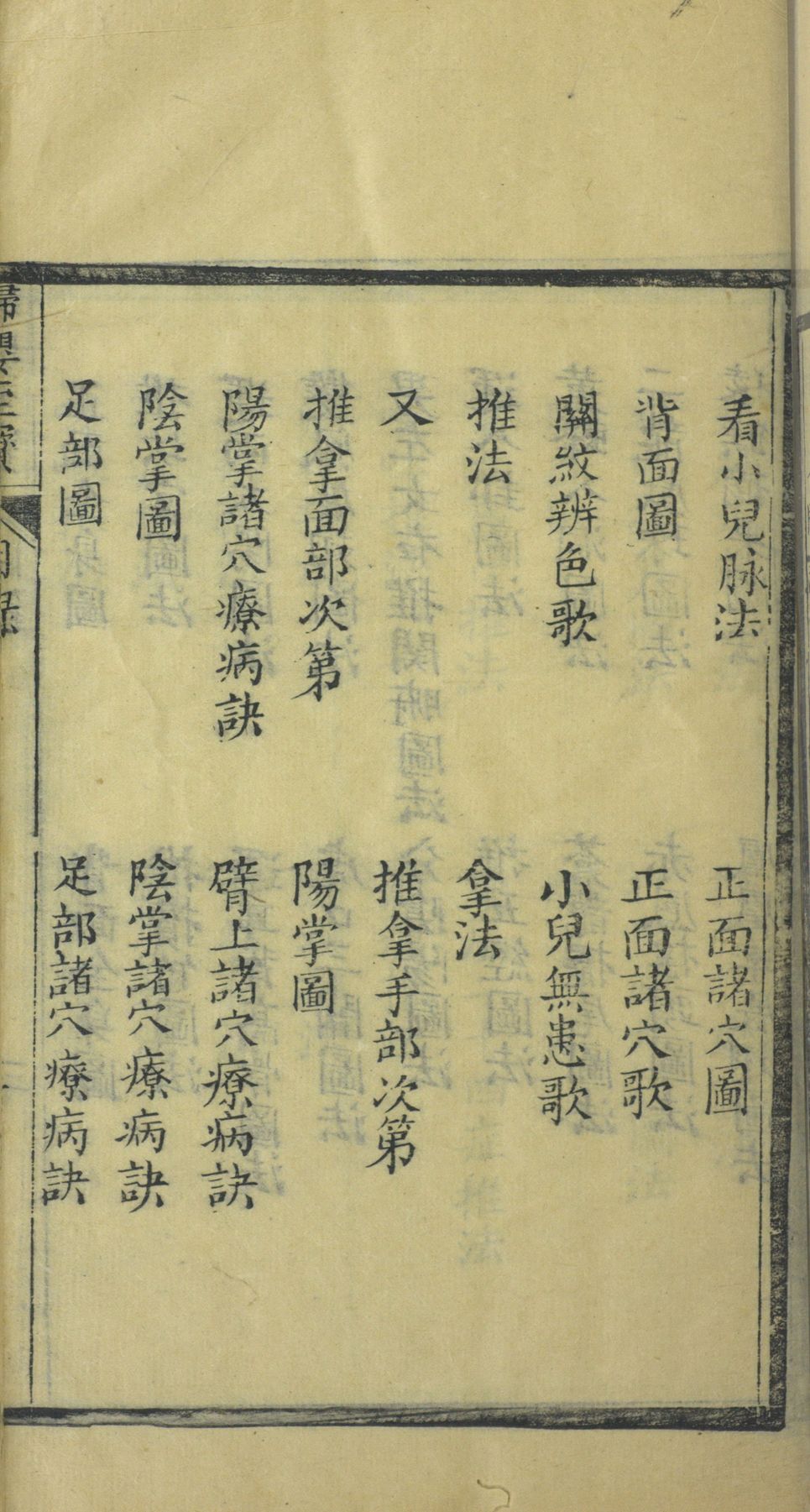 《增订妇婴至宝》8卷,清.徐恜杠辑,徐尚慧 (原刊),清光绪戊子14年1888年夏季重鐫刻本,此版本内含多个图形图片,详图解释多种小儿推拿法,全书合计304页。
