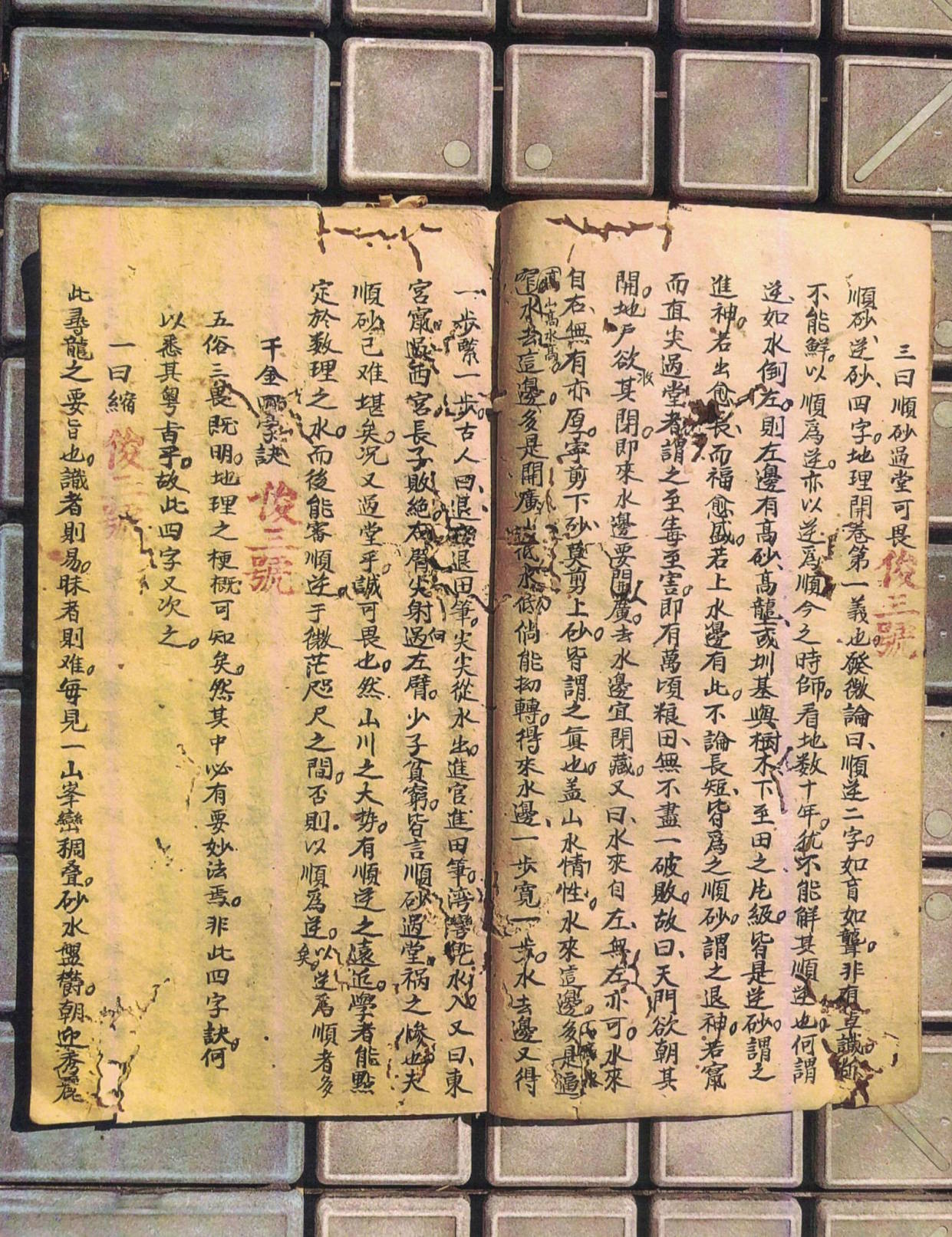 《地理觉蒙粹语》,罗阳西邑范半仙著,刘俊三沸抄録,又在庚辰年重创新卷。本书共55个筒子页,合计110页。