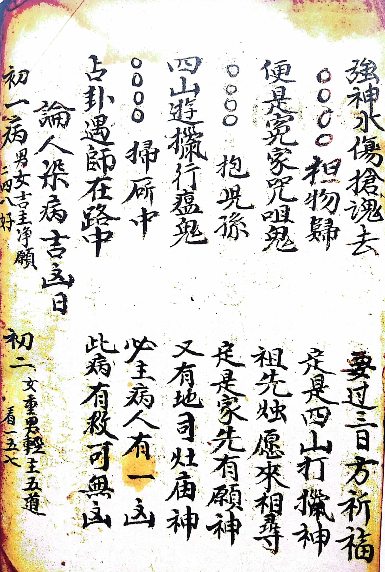 内容包含:入门见报应法、论人染病吉凶日、论人得病凶日、论建除十二星凶日、论病逐日吉凶看、论四门看病吉凶图、论四季得病凶日、论入门时断诀、论十二日遇凶时者主不吉、张天师注逐日染病吉凶、论建除十二星吉凶、论病龟头尾染病吉凶图、论断医子法、人见怪吉凶、十二地支见怪吉凶论、见怪总论吉凶、犬嚎怪断、请师人断法、袁天罡先生所注六十四爻吉凶、病人吃符式、先天断人吉凶、逐日得病吉凶断、逐日得病日期、纳音妙判、十干得病论、推逐日得病甲子、看禄马起例、看生死图推看何门得病吉凶、催生改便符、论得病八卦吉凶图式、论十二地支得病断法、十二命生人得病断法、五行得病法、又论五行断法、十二时辰得病判断、论每日得病断法、人得病禄马斜倒断法、得病在圈内外吉凶图、论十日甲子得病断法、看百怪吉凶、论六畜夜日怪、论凡人年月日时见百怪吉凶判法、十二日时辰见百怪判法、每日见怪吉凶判法、鸡啼非时辰判报、扫财门、收蚂蚁入宅秘旨、先天断吉凶卦书、驱邪治病法秘等诸多内容。