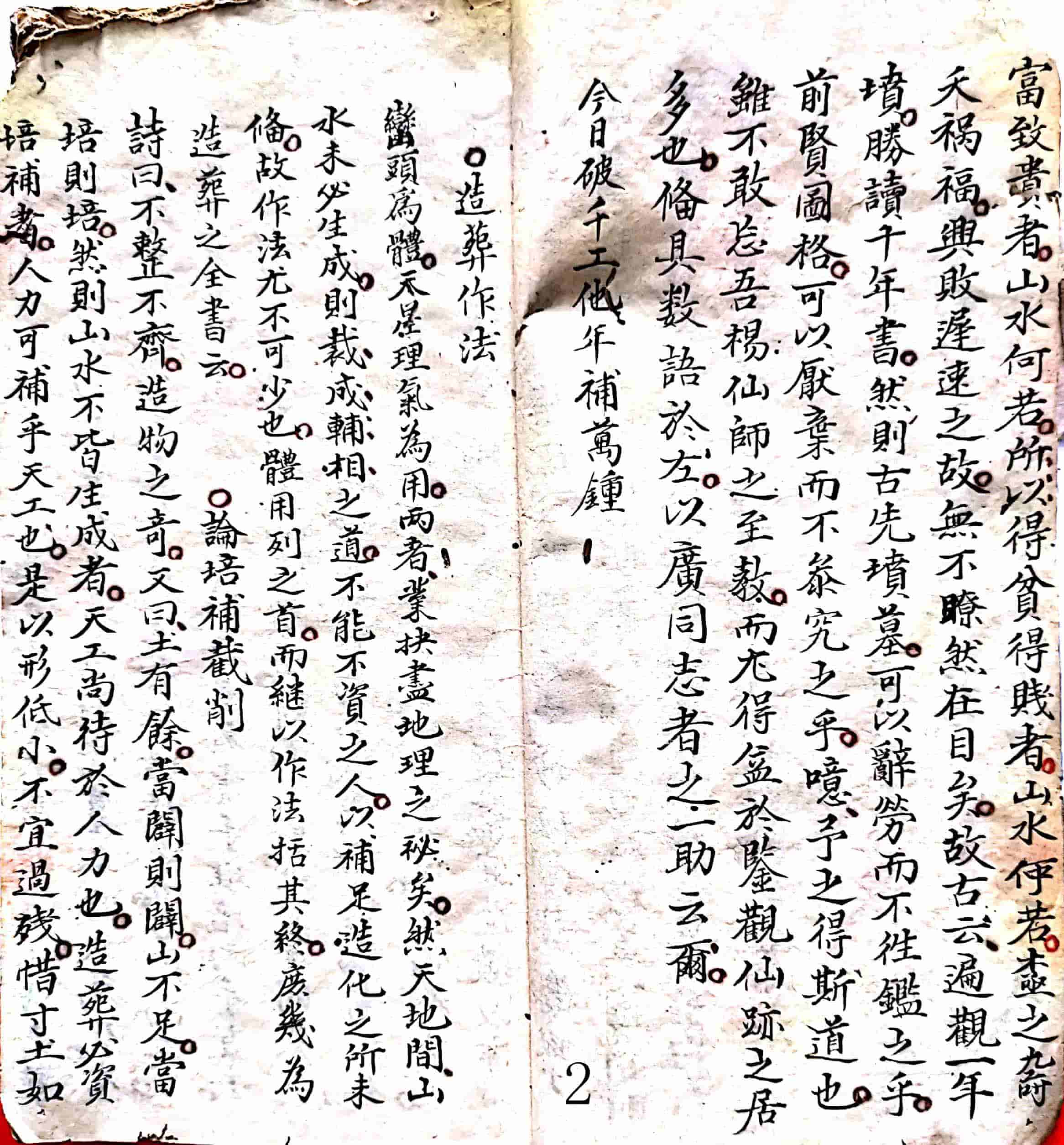 大凡寻龙点穴,先须心鑑明通,次归目力神巧,盖心镜明,则妙理斯能解会,目力巧,则临局方知剪裁,两者缺一不可也,然欲开心镜,无如究古籍,投明师,至若较目力,尤在覆旧坟,鉴徃事,庻几由古可以知今,观徃可以推来,不则,饱读满腹,而登山懵然,穷年牖下,又何益哉,予自二十岁前,地理诸书悉已经目,理明矣,而山形莫辨也,及访诸师,授据山砂,辨认形体,山虽能剖而取用,又无真见也,於是遍求仙跡,求其所以致富致贵者,山水何若,所以得贫得贱者,山水何若,尽之裔夭祸福,兴败迟速之故,无不瞭然在目矣,故古云,遍观一年坟,胜读千年书,然则古先坟墓,可以辞劳而不徃鑑之乎,前贤图格,可以厌弃而不参究之乎,噫予之得斯道也,虽不敢忘吾杨仙师之至教,而尤得益於鉴观仙跡之居多也,偹具数语於左,以广同志者之一助云尔,今日破千工,他年补万万钟。